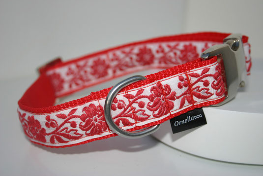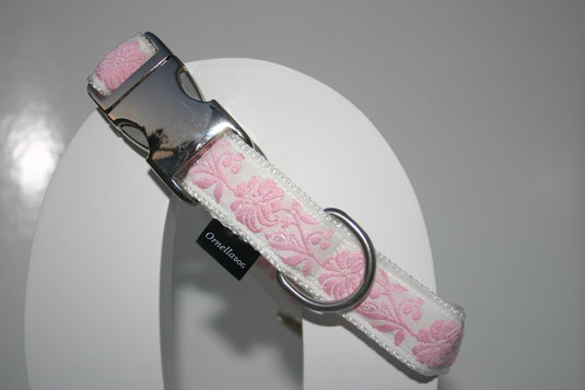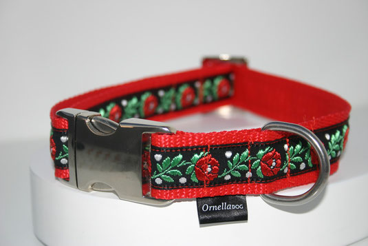Die Halsbänder „Modelle Borte“ sind mit sehr hochwertigen Borten bezogen und voll unterfüttert. Die Auswahl der wählbaren Borten wird fortlaufend erweitert. Bitte beachten Sie, dass die Breite der Borte einheitlich ist und folglich je nach gewählter Trägerbandbreite, ein Teil des Trägerbandes sichtbar bleibt.