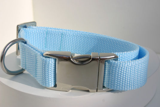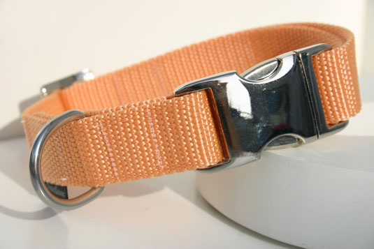 Die Halsbänder der „Classic Serie“ sind aus strapazierfähigen Trägerbändern aus Nylon gefertigt. Die Trägerbänder zeichnen sich durch eine strukturierte Oberfläche aus. Wir bieten diese Halsbänder in einer Vielzahl von Farbvarianten an. Diese Halsbänder sind sehr robust und eignen sich auch sehr gut als Zweithalsband zu den Modellen Stoff und Borte. Die Halsbänder überstehen starken Regen, Bäder in Seen sowie Spaziergänge durch Felder und Wiesen ohne Probleme. Das Trägerband ist unempfindlich gegenüber Schmutz. Eventuelle Verschmutzungen sind leicht zu entfernen.