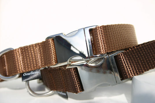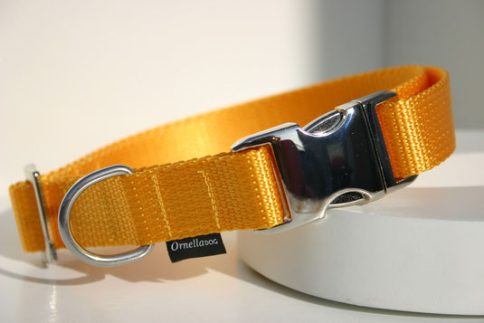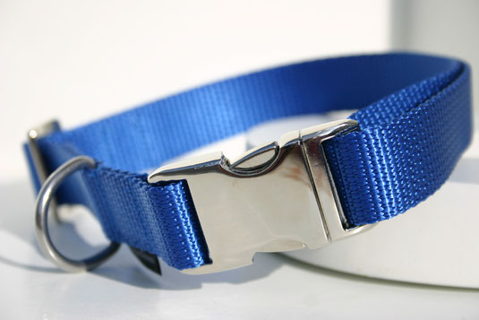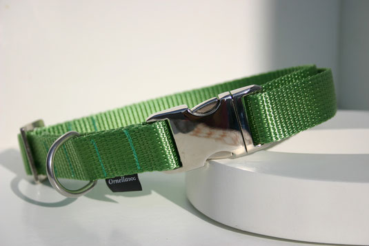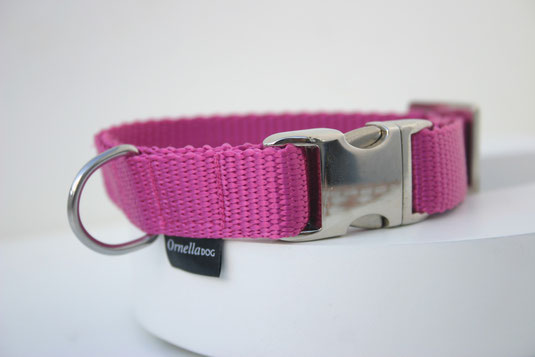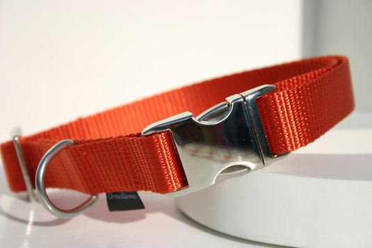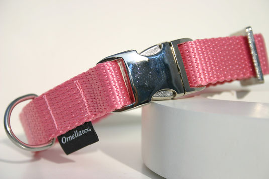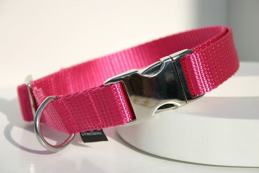 Die Halsbänder der „Exclusive Serie“ sind aus sehr hochwertigen Trägerbändern aus Nylon gefertigt. Die Trägerbänder zeichnen sich durch eine glatte und glänzende Oberfläche aus. Wir bieten diese Halsbändern in einer Vielzahl von Farbvarianten an. Diese Halsbänder sind sehr robust und eignen sich auch sehr gut als Zweithalsband zu den Modellen Stoff und Borte. Die Halsbänder überstehen starken Regen, Bäder in Seen sowie Spaziergänge durch Felder und Wiesen ohne Probleme. Das Trägerband ist unempfindlich gegenüber Schmutz. Eventuelle Verschmutzungen sind leicht zu entfernen.